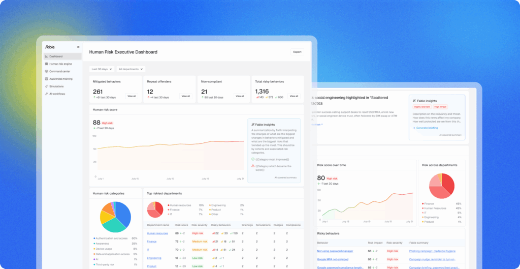 The new gold standard in security reporting isn’t about compliance; it’s about comprehension. That means metrics need to be both explainable and actionable. With Fable Security’s board-ready reporting, CISOs can now quantify human risk with precision and context. That includes: