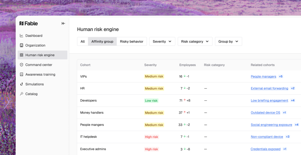 Group employees into risk cohorts based on role, access, behaviors, and exposure.
