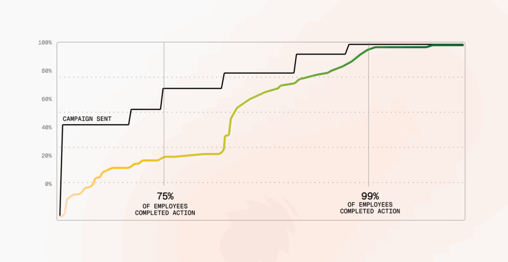 Here’s a concrete example. One security team used Fable AI–generated video briefings followed by targeted nudges to drive OS update compliance. Most organizations would stop at reporting how many people watched the video or completed the training. With Fable, the metric was action completed: did the user actually update their device?